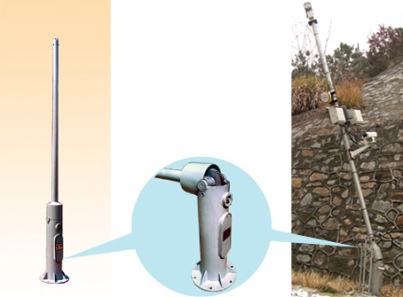打开蜗轮箱门,即可用摇把顺时针方向摇动,监控杆自动倾斜,逆时针方向摇动,监控杆即可复位。